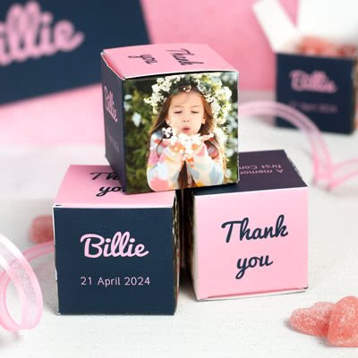 Stuur je genodigden naar huis met een zoete herinnering. Vul bedankjes doosjes (set van 12) met snoep en geef ze weg aan het einde van je feest. Personaliseer de bedankdoosjes in het thema van je communie, huwelijk of babyborrel en geef wat dankbaarheid weg waarvan je gasten kunnen smullen na het evenement. Maak er een en ontvang twaalf identieke bedankjes doosjes. De gepersonaliseerde doosjes zijn een gemakkelijke manier om een origineel aandenken te maken!