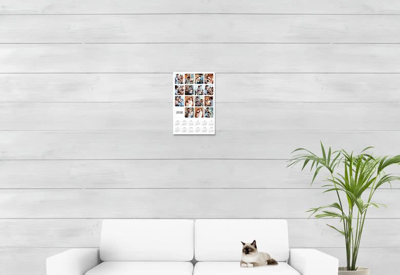 Jouw gepersonaliseerde jaarplanner gemakkelijk en snel online gemaakt door meerdere leuke foto's toe te voegen. Kies daarnaast je favoriete vooraf ontworpen design om de jaarplanner A3 mee vorm te geven. Met het online bewerkingsprogramma maak je snel iets moois. Maak een overzicht van het jaar! Personaliseer je jaarplanner met een mooie collage van meerdere kleine foto's. Dit praktisch en uniek overzicht van het jaar op één grote pagina hang je op aan de muur.