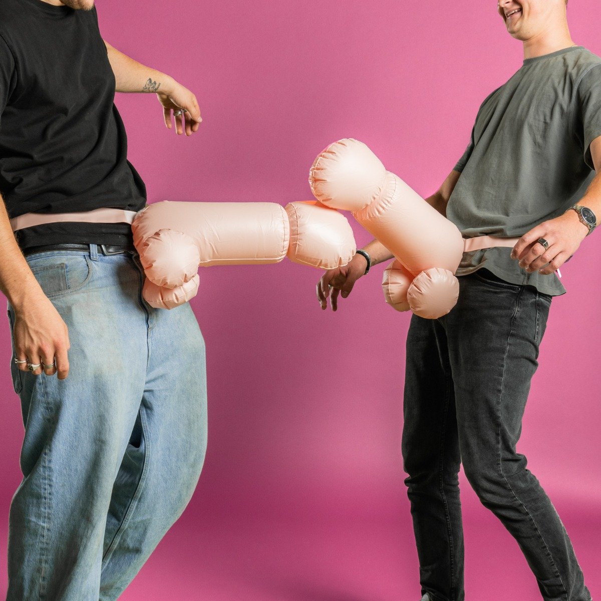 Ben jij klaar voor het meest hilarische feestje van het jaar? Met de Opblaas Piemel Gevecht Set verandert elke ruimte in een arena vol testosteron, lol en pure chaos. Deze set bevat twee gigantische voorbind piemels die je stevig vastmaakt rond je middel. Vervolgens is het aan jou en je tegenstander om elkaar te lijf te gaan. Niet met vuisten, maar met je opblaasbare gereedschap. Het doel? Probeer de ander uit balans te krijgen, al springend en zwaaiend met je indrukwekkende rubberen aanhangsel. Perfect voor vrijgezellenfeesten, foute thema-avonden of als partygadget voor volwassen vrienden met een goed gevoel voor humor.